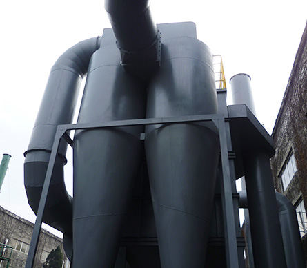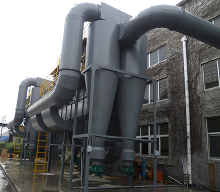 烟气经烟道进入预处理器,该设备将烟气中火星及较大颗粒粉尘捕集下来,同时起到降温作用,下设卸灰阀。保证了系统的安全性,并起到初步除尘的作用,降低了后续设备的负荷。