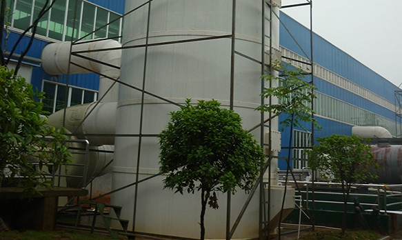 吸收法可分为化学吸收及物理吸收,由于散发废气中含有大量的酸性气体,可以通过喷淋碱液来吸收酸雾;同时碱液可以吸附废气中的其他有害物质。前者通过化学吸收后者则通过物理吸附达到去除目标污染物的目的。