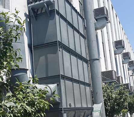 PFF型脉冲滤袋除尘器由除尘室、分气箱、过滤单元、电磁脉冲阀、净气室、集灰斗、检修人孔等组成。过滤单元是滤袋除尘器的关键的部件,其由骨架和滤袋组成(可参考设备原理图)。检修平台扶梯等由业主自行考虑是否安装,出厂均不配置。