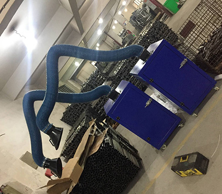 5、处理焊接烟尘时,将吸气臂的吸风罩口距焊接点20-30厘米距离上佳。因我公司产品吸力强劲,工作时吸气口须距焊点在15厘米以上。若贵公司工件附着油性物质,建议离焊接点25厘米以上。